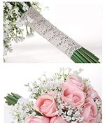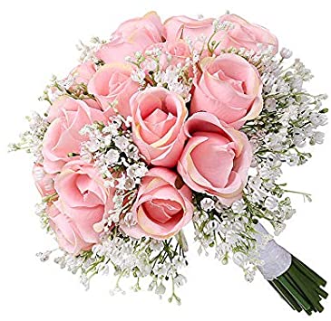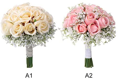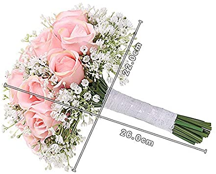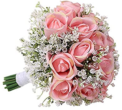 Ewer Wedding Bouquet, Romantic Wedding Bride Holding Bouquet, Silk Roses Gypsophila Bridesmaid Bouquet Bridal Bouquet, Artificial Flowers for Wedding, Party and Church, Pink Ivory