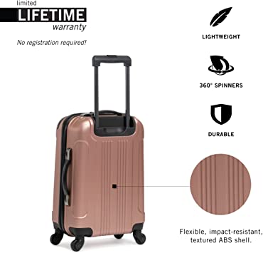 - Luggage is made of a durable, lightweight hard ABS exterior with reinforced protective molded corner guards that absorb shock for maximum impact resistance and durability.